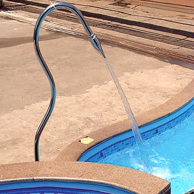 As cascatas além de serem muito bonitas, ajudam a oxigenar a água da piscina. O barulho da água caindo é relaxante. Abaixo agumas fotos de cascata em aço inox.